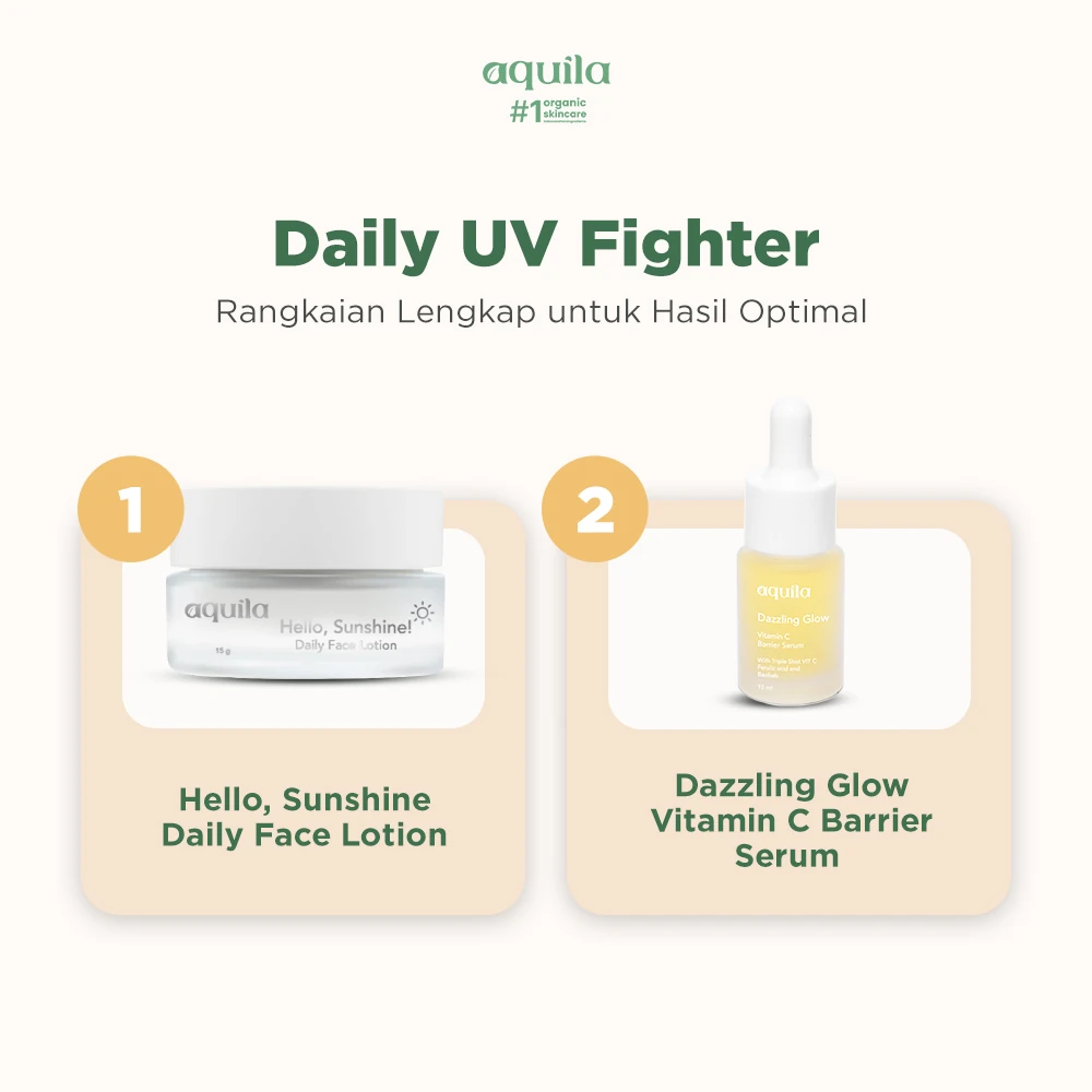 Diformulasikan dengan bahan natural & organik, Dazzling Glow Serum dapat digunakan pada seluruh jenis kulit. Dengan kandungan triple shot vitamin C, ferulid acid, dan baobab, Dazzling Serum dapat mencerahkan dan memperbaiki serta menjaga skin barrier secara efektif!