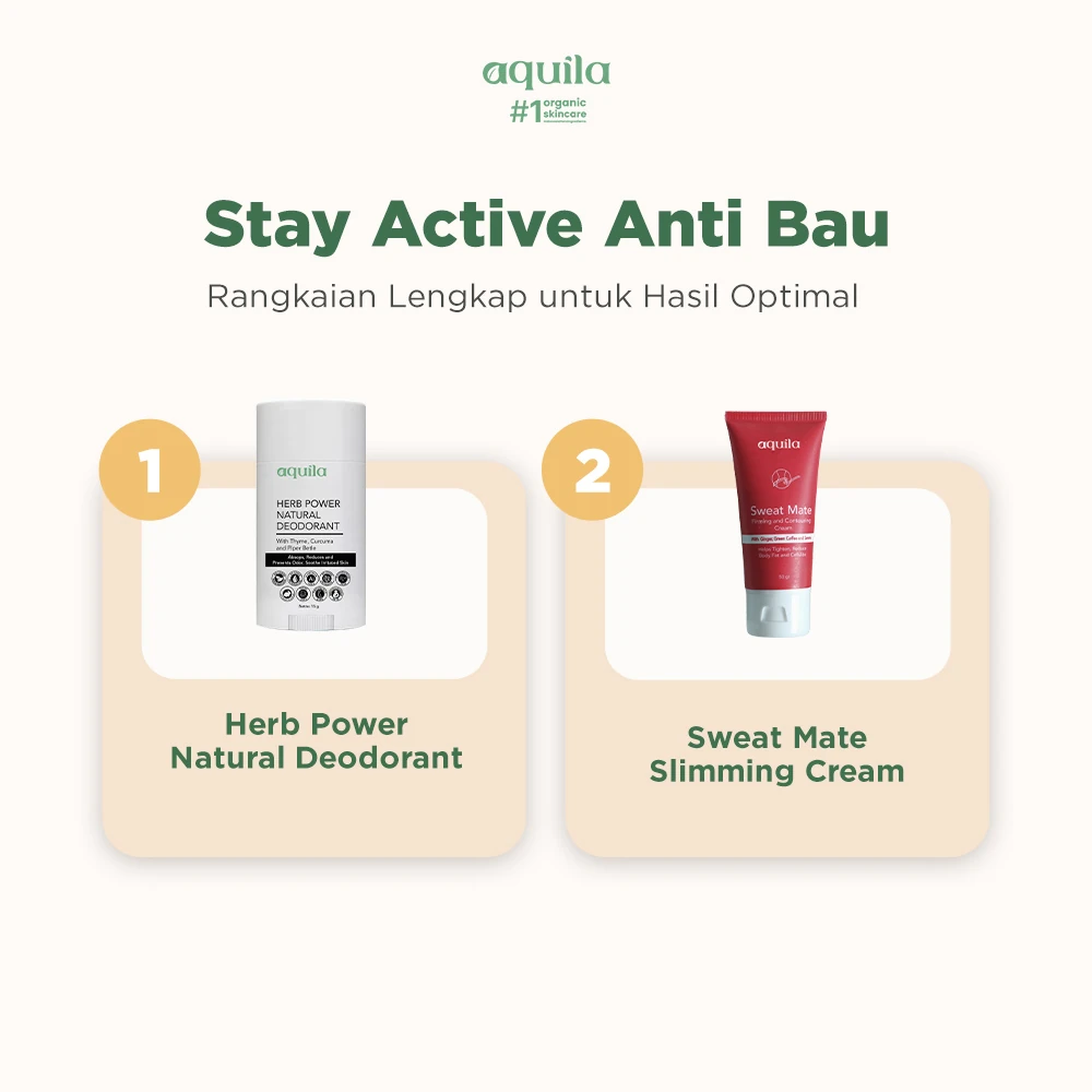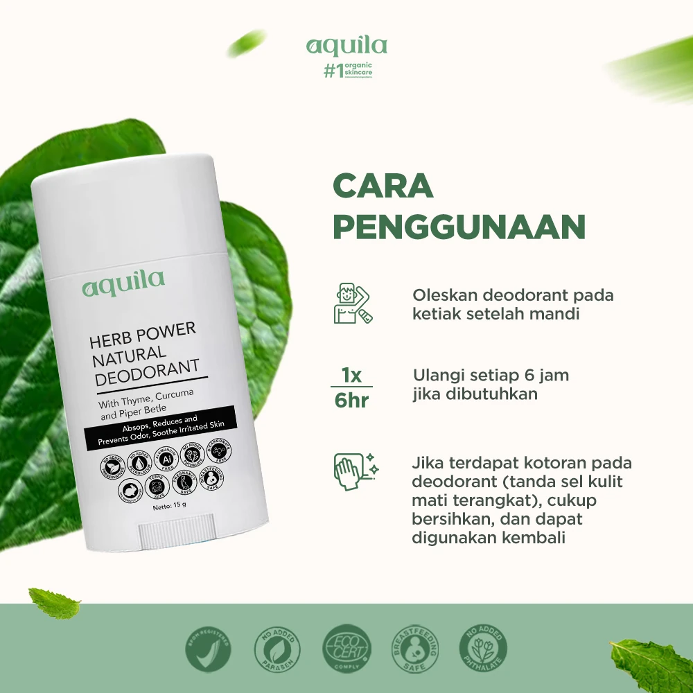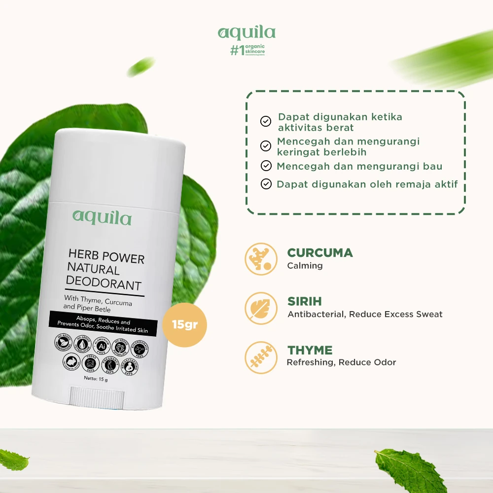 Power Natural Deodorant dengan kandungan natural dan organik seperti thyme, curcuma, dan sirih yang membantu mengurangi dan mencegah bau badan berlebih, mencerahkan kulit ketiak, dan menenangkan kulit yang teriritasi ringan. Dengan kandungan alami didalamnya, produk ini tidak meninggalkan bekas kekuningan pada pakaian.