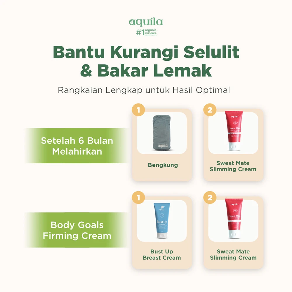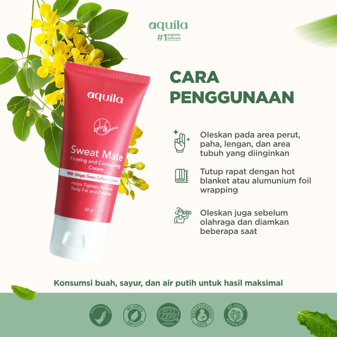 Sweat Mate Slimming membantu mempercepat pembakaran lemak, mencegah stretchmark dan selulit, serta menjaga kelembaban dan elastisitas kulit. Kandungan bahan organik ginger, green coffee, dan senna ideal untuk mengencangkan perut pasca melahirkan dan mengurangi nafsu makan.